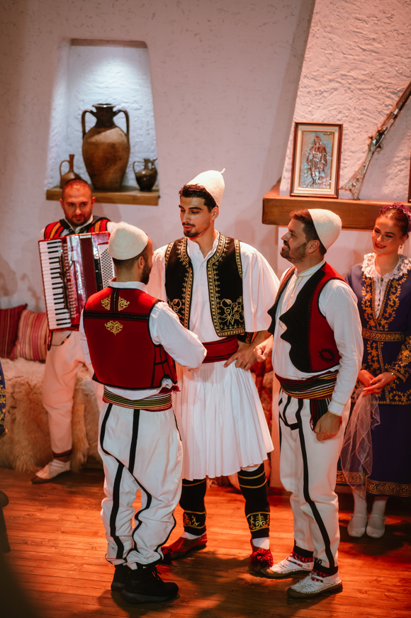 Throughout the evening, music and dance bring tradition to life. Participants witness a traditional Albanian wedding reenactment, hear the sounds of UNESCO recognized Iso Polyphony, and join in valle, the traditional circle dance that brings everyone together.